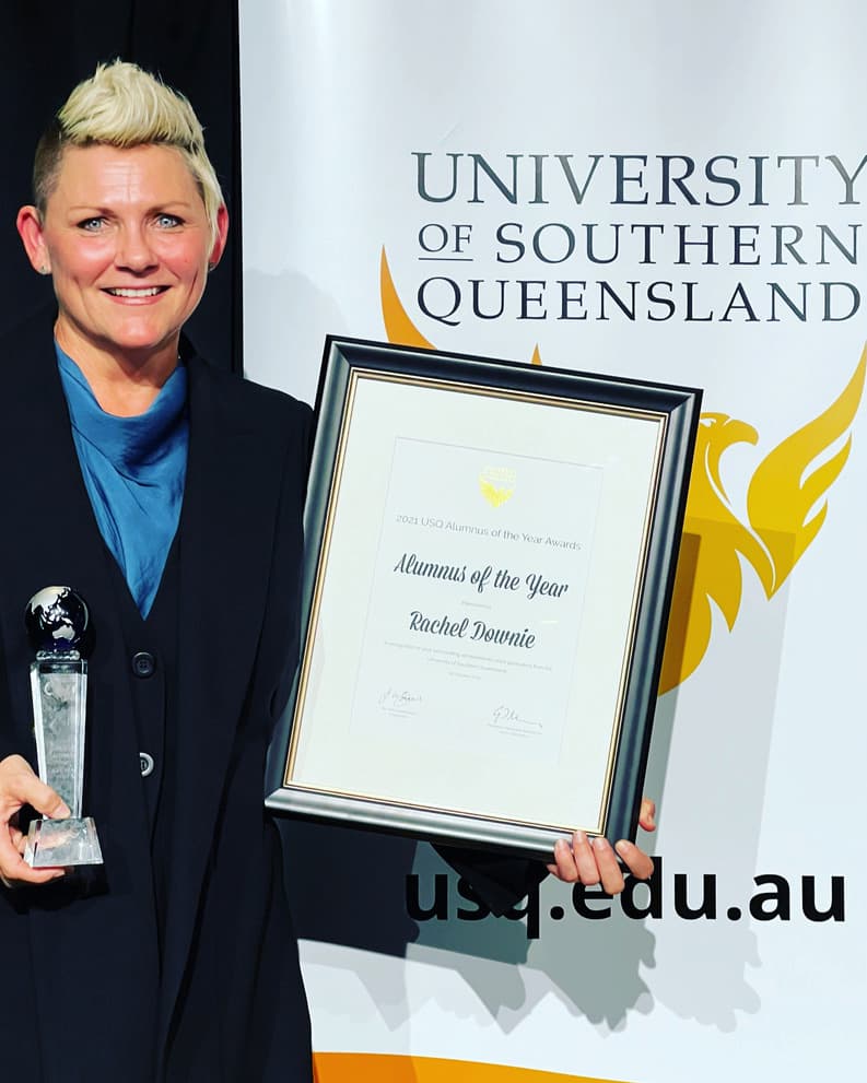 Rachel Downie was recognised by USQ for significant contributions to education and child protection.